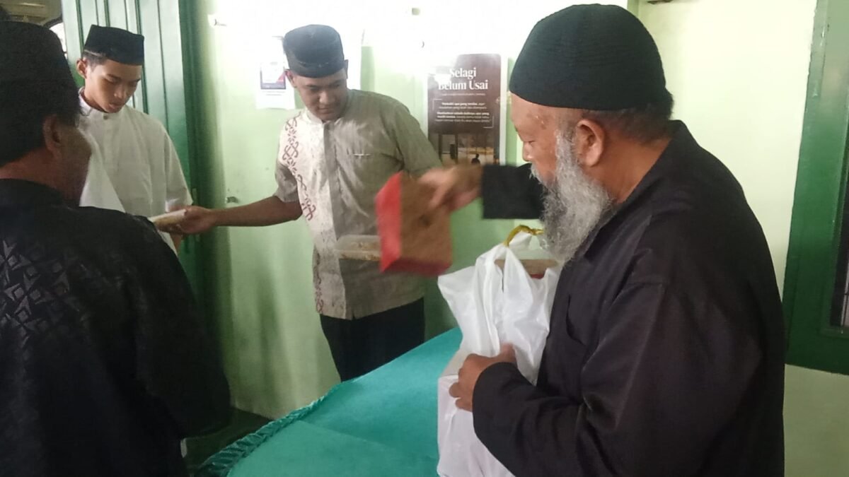 Dalam kegiatan tersebut, panitia membagikan es teh manis dan nasi kotak kepada jamaah serta masyarakat sekitar masjid.