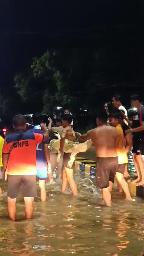 Buaya akhirnya berhasil diamankan dan dievakuasi oleh warga setempat. Kejadian ini menjadi perhatian di tengah kondisi banjir yang masih berlangsung.