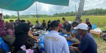 Usai panen, Bupati Irwan Sabri melanjutkan kegiatan dengan duduk bersama petani dalam suasana santai dan penuh keakraban.