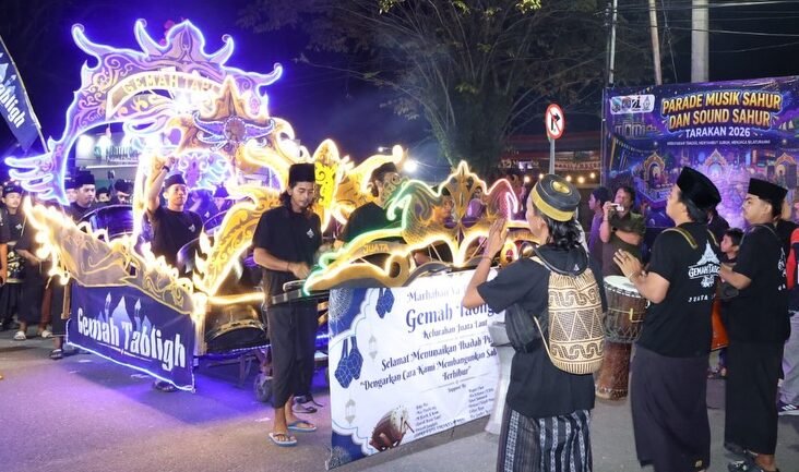 TARAKAN – Kreativitas dan kekompakan Gemah Tablig Kelurahan Juata Laut membuahkan hasil manis. Mereka meraih juara pertama kategori pejalan kaki pada Parade Musik Sahur dan Sound Sahur Tarakan 2026, berkat penampilan unik menggunakan gerobak patrol yang dihias lampu warna-warni.