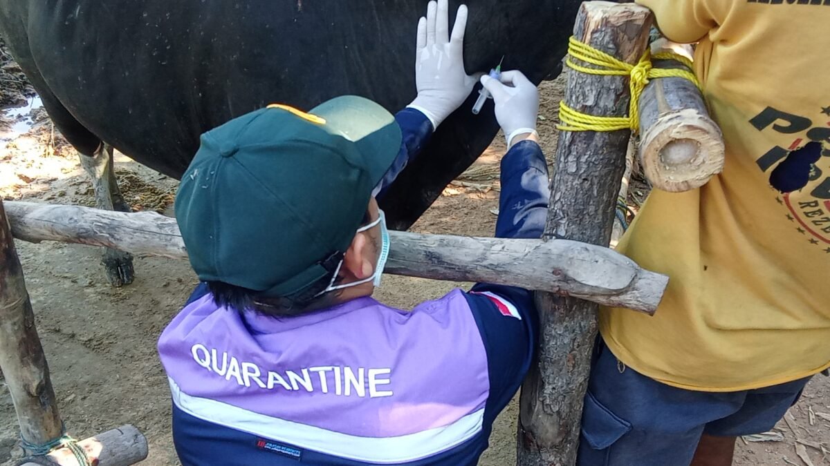 Tim karantina turun langsung ke sejumlah titik penampungan untuk melakukan pengambilan sampel darah sapi. Pemeriksaan ini menjadi langkah antisipasi guna memastikan hewan kurban dalam kondisi sehat dan layak untuk disembelih.