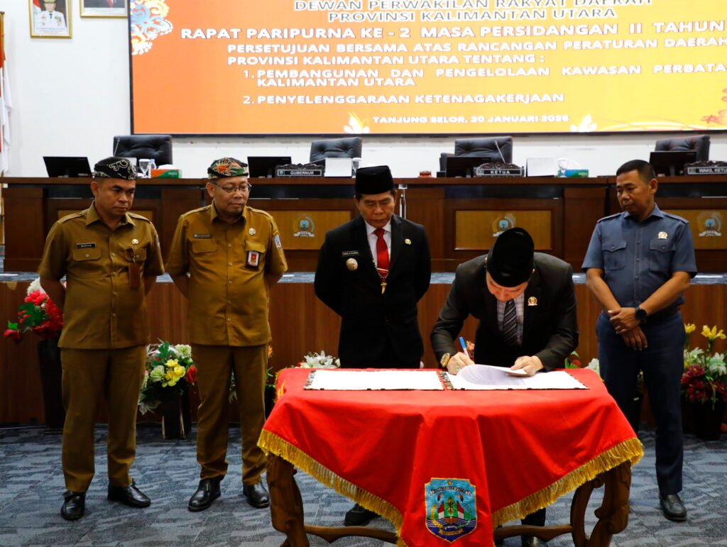 TANJUNG SELOR – Gubernur Kalimantan Utara (Kaltara) Dr. H. Zainal A. Paliwang, S.H., M.Hum bersama Dewan Perwakilan Rakyat Daerah (DPRD) Kaltara menyetujui dua Rancangan Peraturan Daerah (Ranperda) tentang Pembangunan dan Pengelolaan Kawasan Perbatasan, dan tentang Penyelenggaraan Ketenagakerjaan.