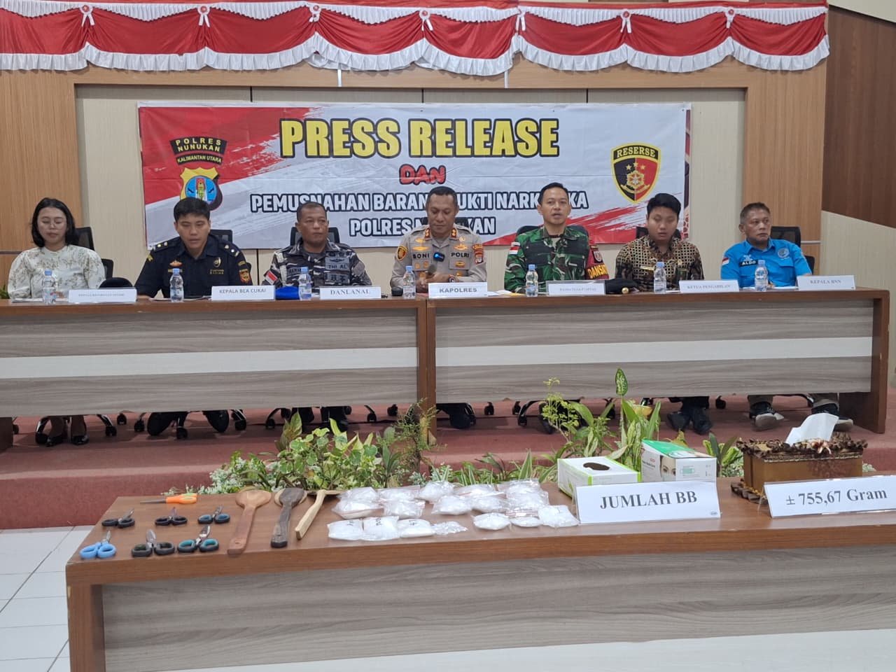 Perangi Narkoba di Perbatasan, Polres Nunukan Musnahkan Barang Bukti Sabu
