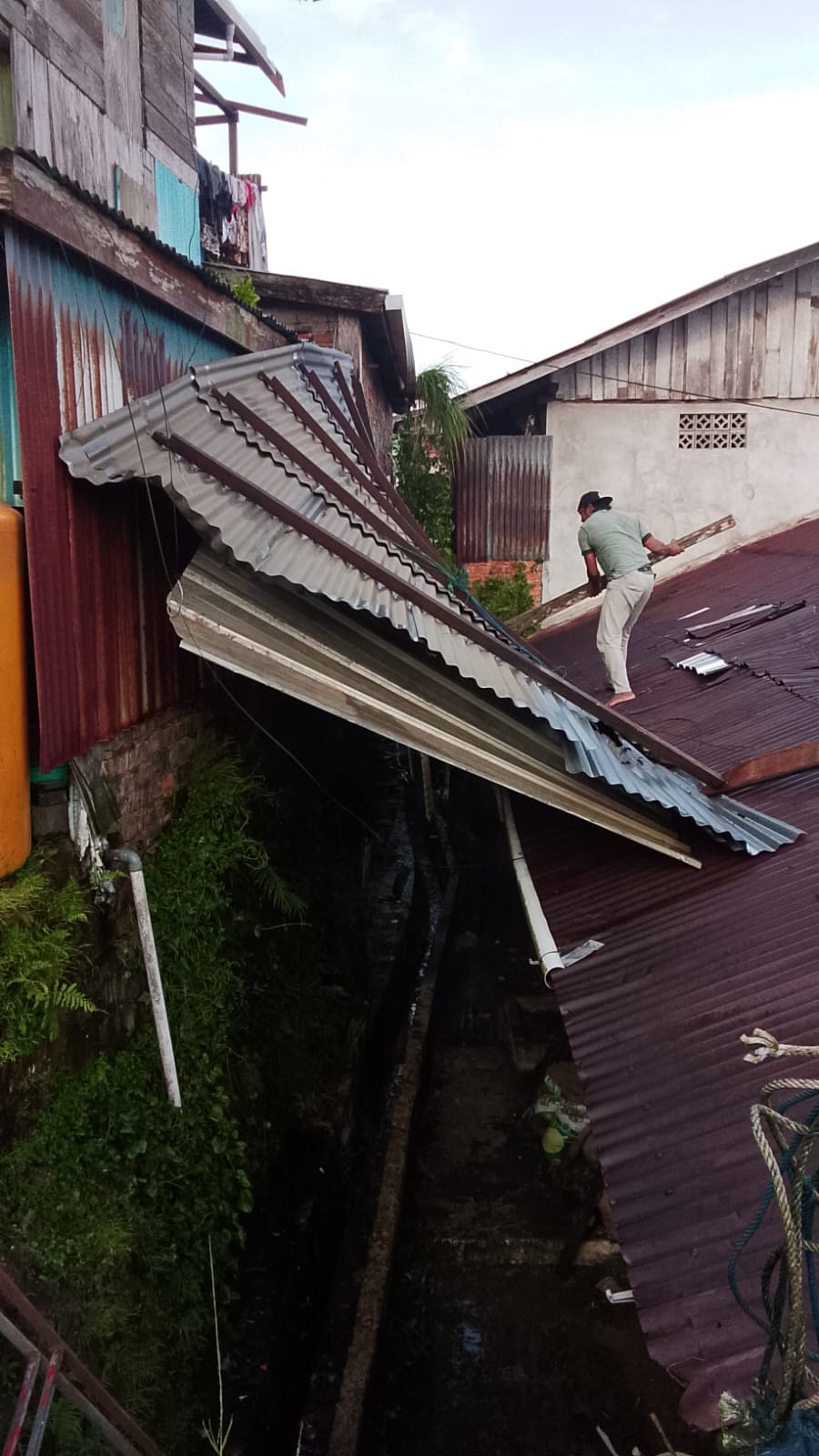 “Akibat hujan dan angin kencang semalam, Rata-rata rumah mengalami atap rusak/ seng terlepas dan tertimpa pohon seperti di RT 16, RT 17, RT 30, , ada juga tanah longsor yang menimpa satu rumah warga seperti yang terjadi di RT 29, selebihnya pohon tumbang di area tanah kosong dan tumbang ke jalan, seperti yang terjadi di wilayah RT 07 Sebengkok AL”, ungkapnya.